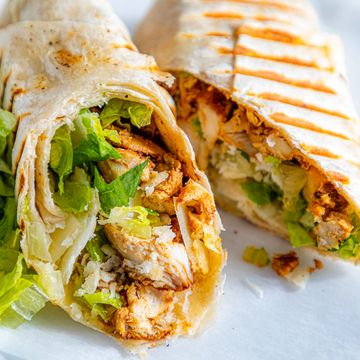 Choose from our Grilled chicken tossed with crisp romaine lettuce, parmesan cheese, and creamy Caesar dressing, all wrapped in a warm flour tortilla or